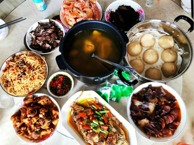 這餐飯里,透著我們身處塵世最樸素的憧憬。可以沒有山珍海味,但魚是必不可少的一道壓軸菜,寄寓著“年年有余”的期待和祝福。一碗大塊紅燒肉象征著日子紅紅火火,一盤碧綠的青菜則預示全家人健康常在。