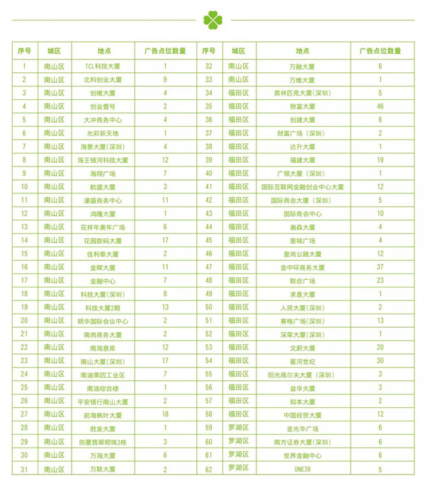 ▲ 四季優美廣告深圳寫字樓投放點共計500個